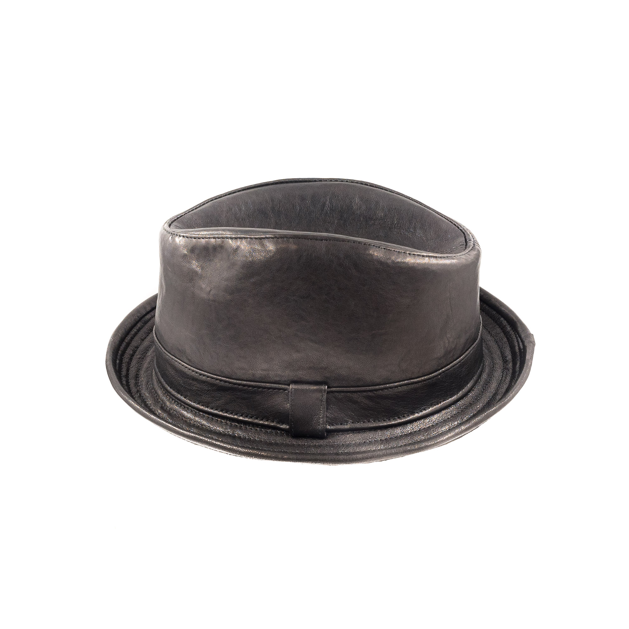 Cappello con possibilità di stampa personalizzata in pelle d’agnello pieno fiore colore nero.